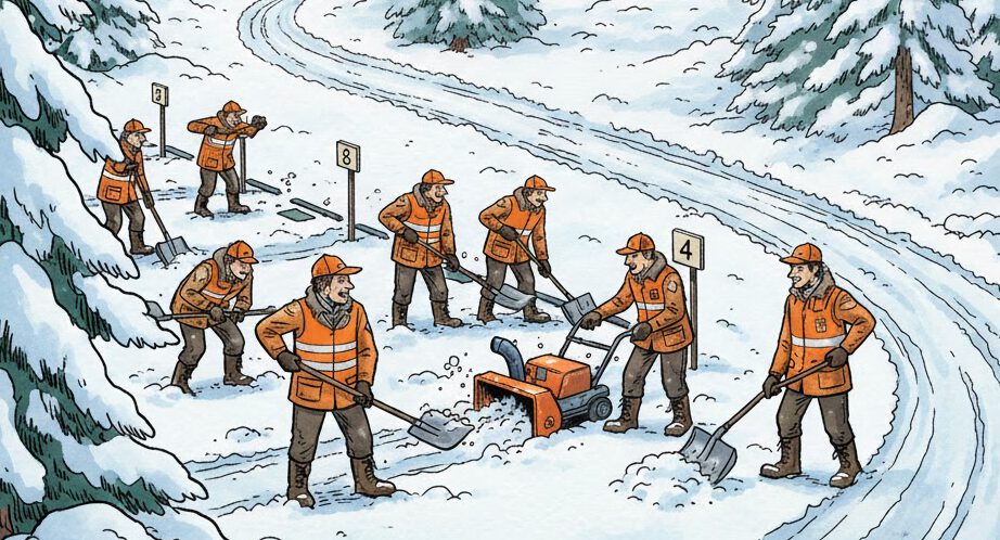 I helgen 10-11/1 2026 ska vägar och parkeringar inom området snöröjas.
